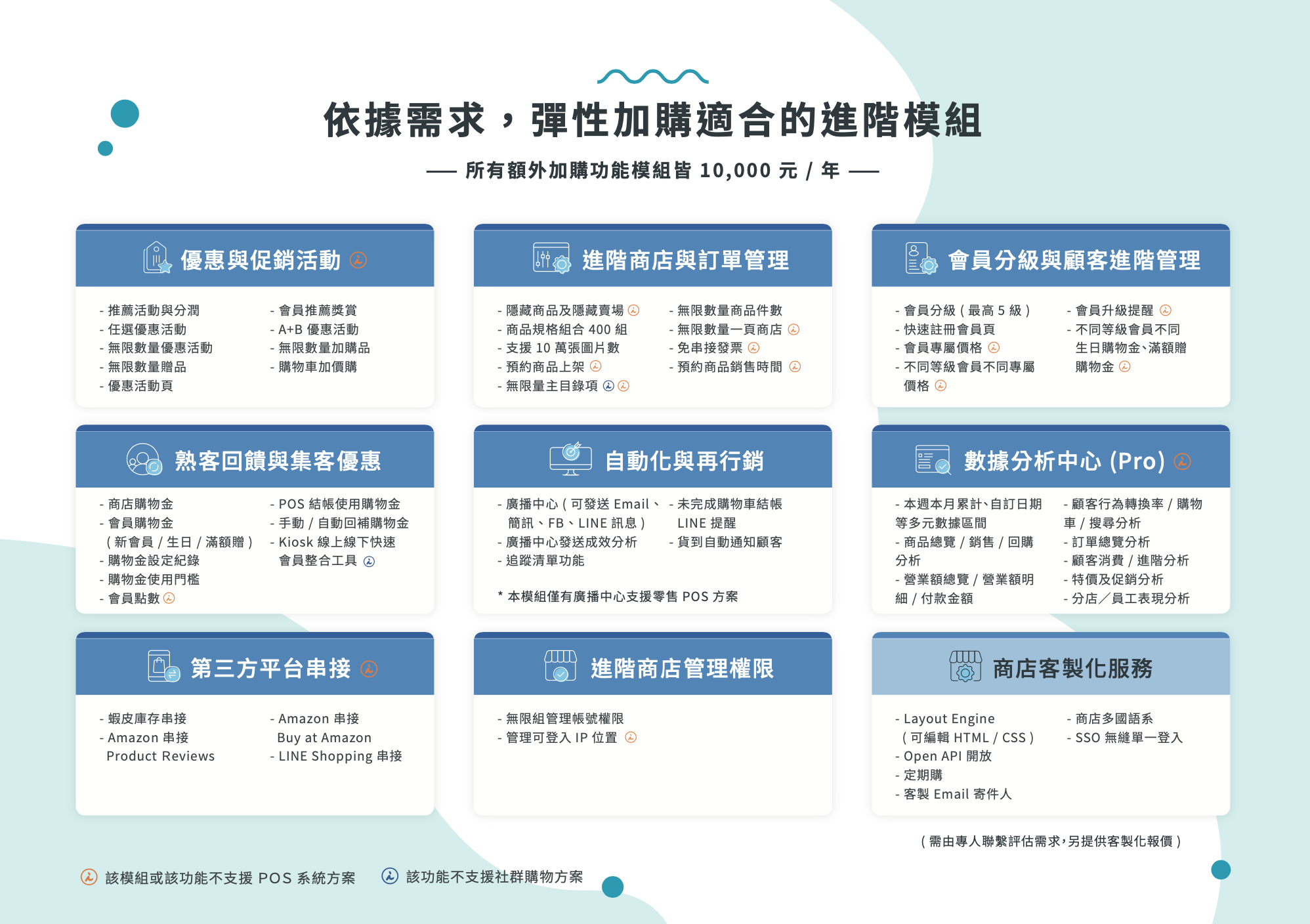 多元且強大的功能模組,協助你快速拓展生意。